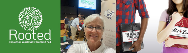 June 2024, North Carolina -- ACSI (Association of Christian Schools International) and the Colson Center partnered to offer a “worldview summit” to help educators discover ways to more effectively engage students in the spiritual formation journey and help them develop deeper roots in a biblical worldview. When a door opened for Healing Hearts to exhibit at this summit in North Carolina, Irene Pizzimenti (Director, Great Lakes & Northeast regions) felt led to take our Youth discipleship studies to share with the educators. Irene shared: "Initially, I wasn’t quite sure what to expect, but after the first general session, the Lord showed me that Healing Hearts Ministry could be invaluable in helping educators and administrators flourish in their spiritual walk; and flourishing teachers can pour into students who can flourish! The youth studies could provide a spiritual foundation in creation identity, rooted in the word of God, and point them to their Christian identity in the gospel of Jesus Christ. I was able to encourage educators and parents to use the First Love and The Fight of Your Life studies in their youth groups, Sunday schools, high school curriculum, and in their own homes to provide opportunities for conversations about how faith and culture intersect in a way that can glorify God and encourage maturity in Christ. Additionally, these youth studies can lead parents and families of students to discover Healing Hearts' adult studies where they could find freedom and healing in Christ."