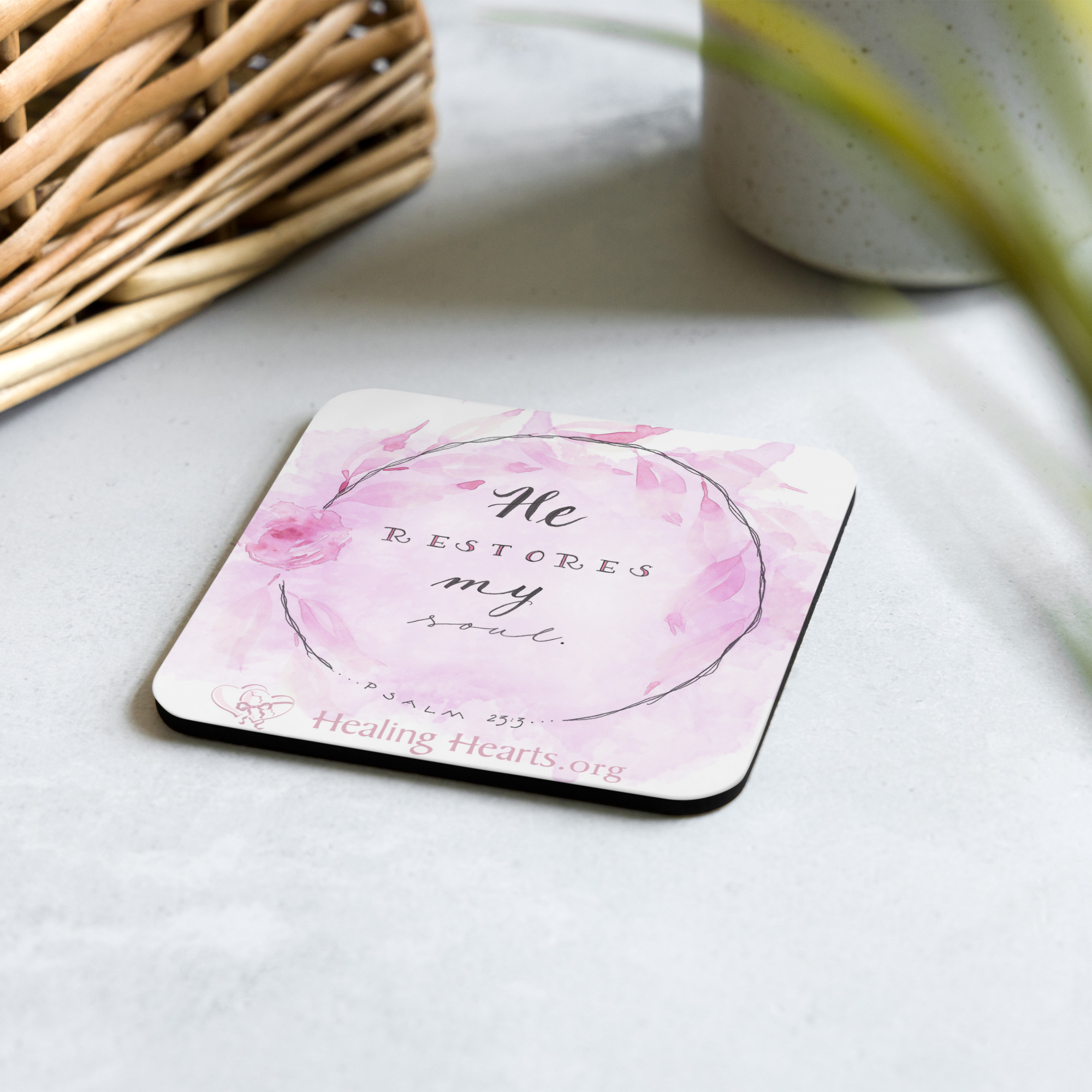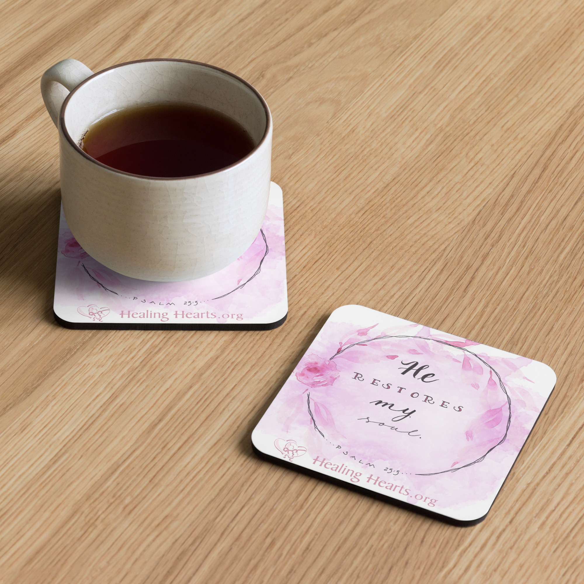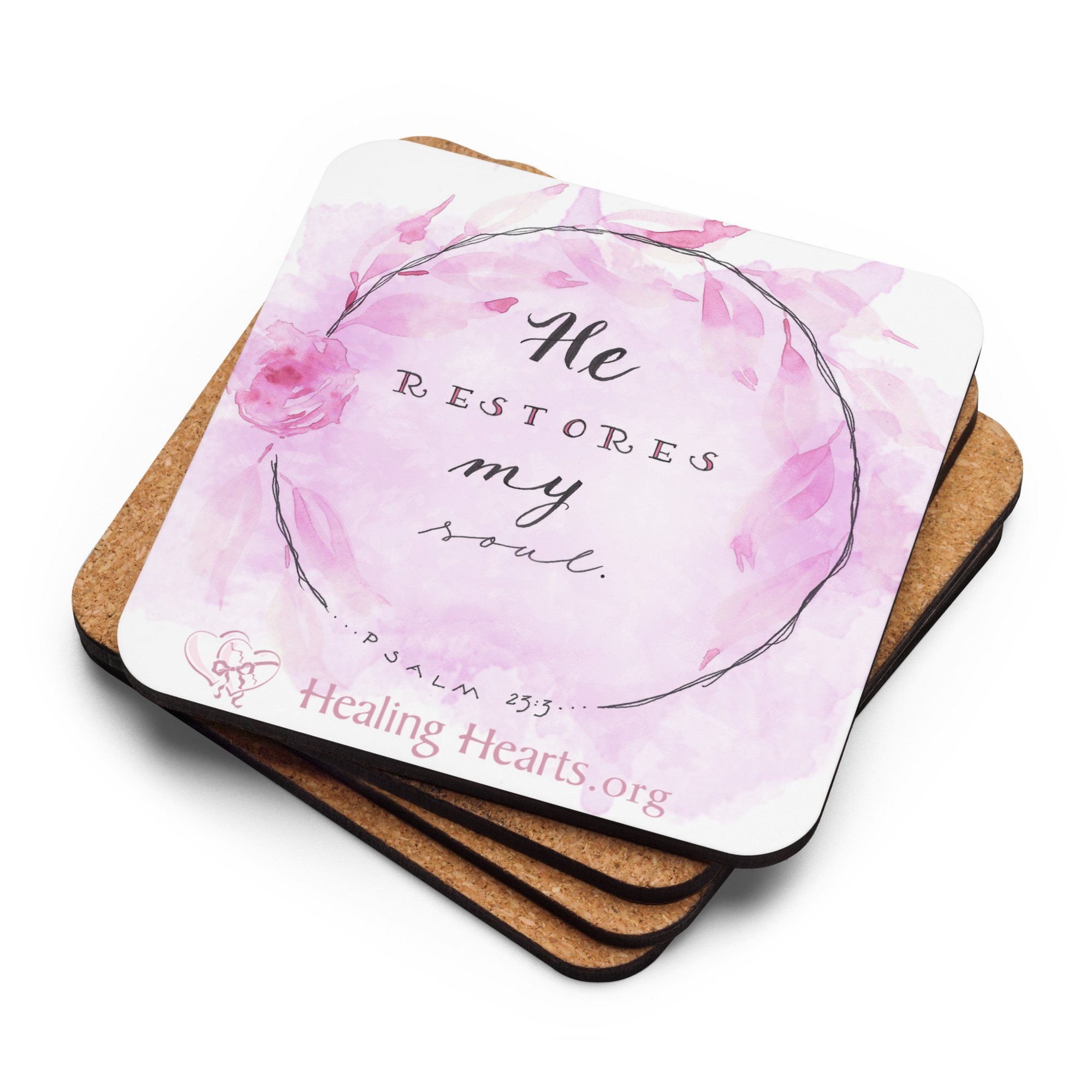 This cork-back coaster features "Heart Reflections" art by watercolor artist Madge Bloom. Consider donating some for your church lobby or office as an outreach to help others discover the life-changing ministry of Healing Hearts. The coaster is waterproof and heat-resistant, designed to last a long time. Buy it for yourself or as a lovely gift for your, friends, family, church, or office.• Hardboard MDF 0.12″ (3 mm)