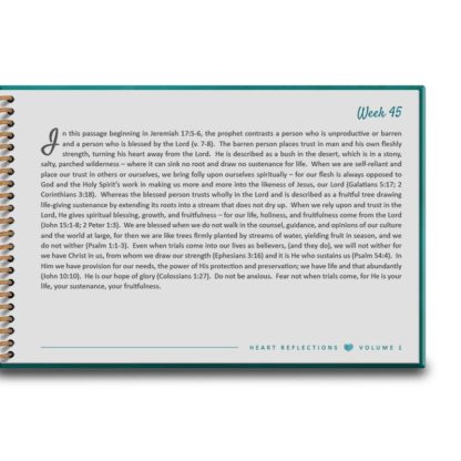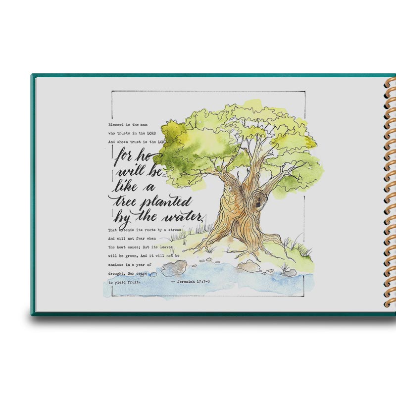 Featuring a hardcover with gold foil and a gold coil binding, this 52-week devotional makes a beautiful gift book you can give or display at your home. The coil binding will allow you to easily display it open flat on a coffee table, upright in a book stand, or even fold it back to display just the devotional image.