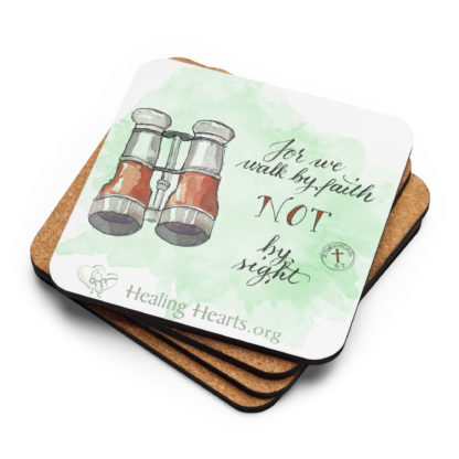 This cork-back coaster features "Heart Reflections" art by watercolor artist Madge Bloom. Consider donating some for your church lobby or office as an outreach to help others discover the life-changing ministry of Healing Hearts. The coaster is waterproof and heat-resistant, designed to last a long time. Buy it for yourself or as a lovely gift for your, friends, family, church, or office.