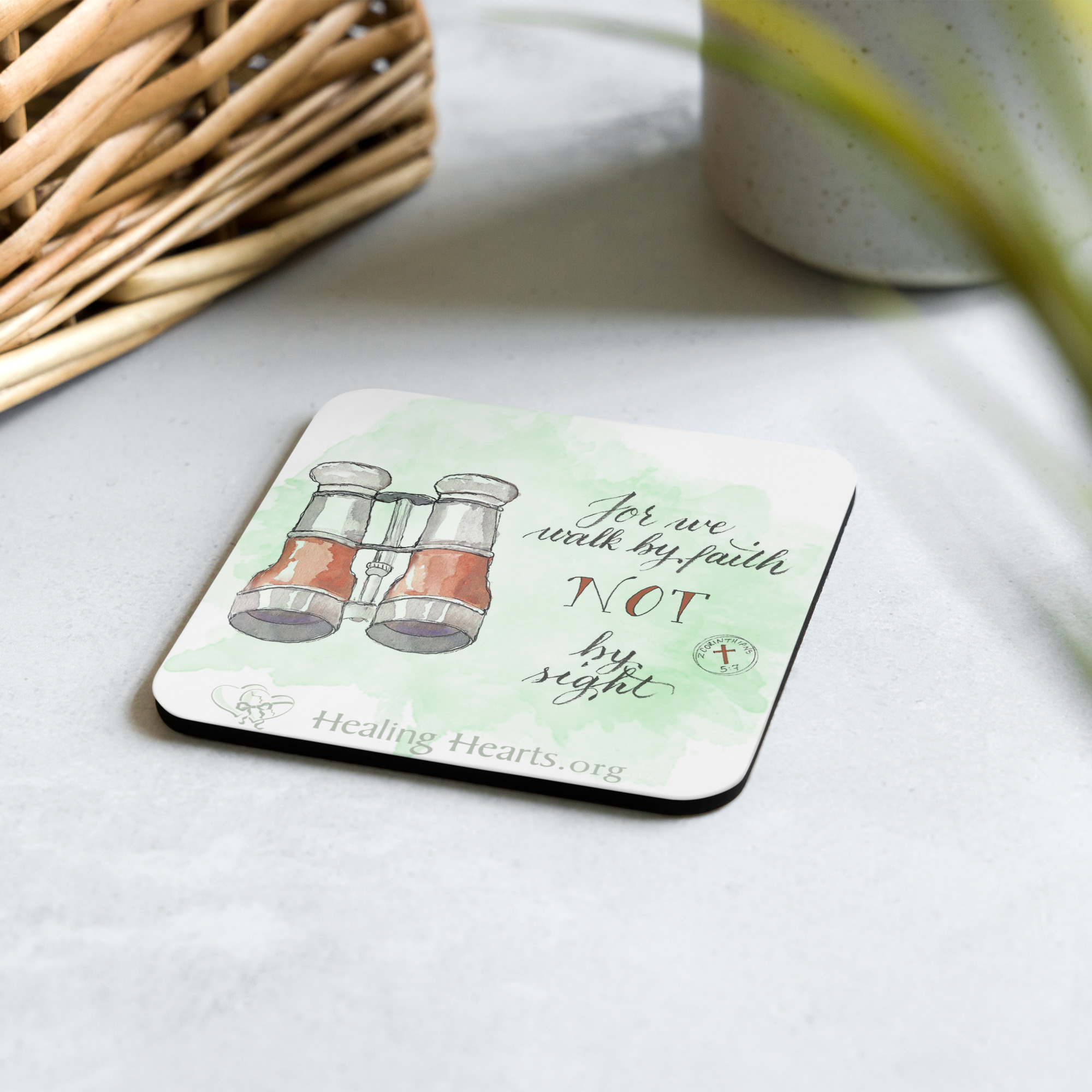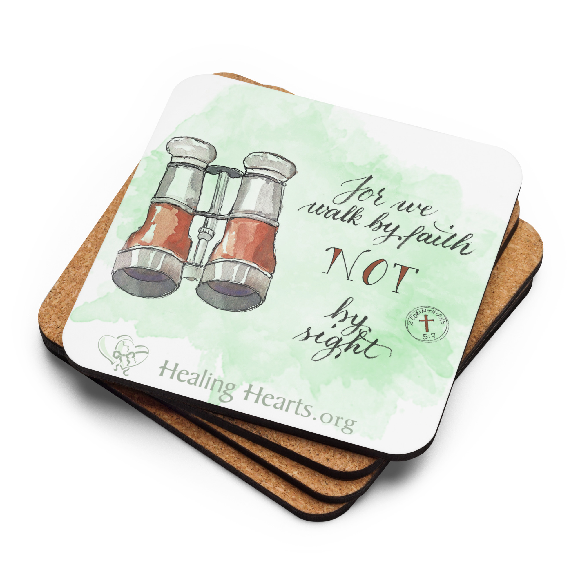 This cork-back coaster features "Heart Reflections" art by watercolor artist Madge Bloom. Consider donating some for your church lobby or office as an outreach to help others discover the life-changing ministry of Healing Hearts. The coaster is waterproof and heat-resistant, designed to last a long time. Buy it for yourself or as a lovely gift for your, friends, family, church, or office.• Hardboard MDF 0.12″ (3 mm)